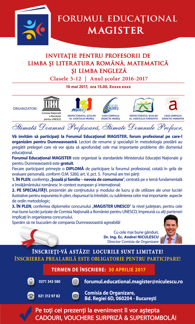 | | În atenţia directorilor unităţilor de învăţământ şi a profesorilor de limba şi literatura română - Conferinţa Naţionala "Experienţe Didactice în Contextul Multicultural"